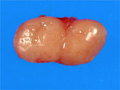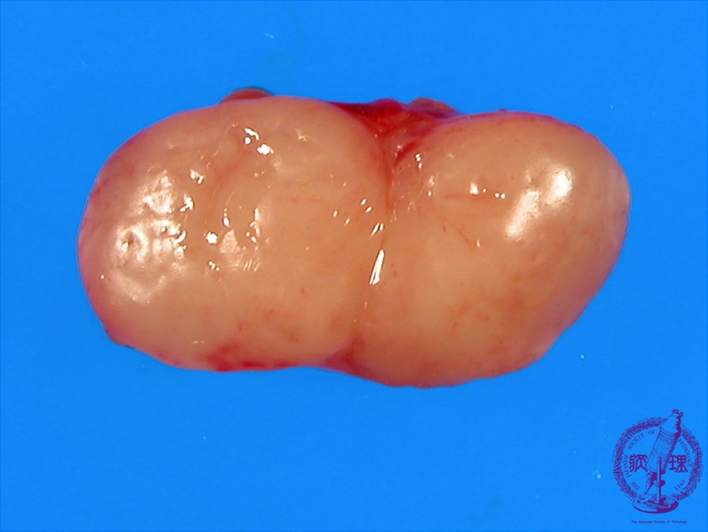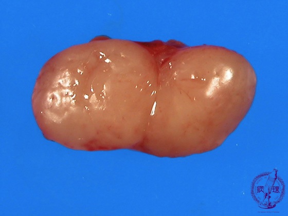 Macroscopic image: The involved lymph nodes are relatively soft and typically not adherent to the surrounding tissue. The cut surface is uniform in nature with a white-yellow color ,and a bulging appearance.