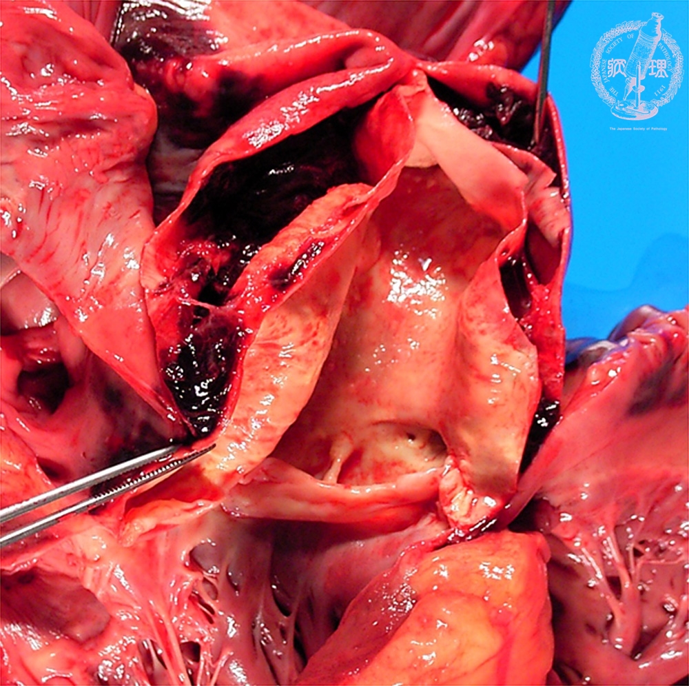 Macroscopic view (aortic dissection): There is a fresh hematoma within the dissection plane formed in the ascending aorta.