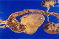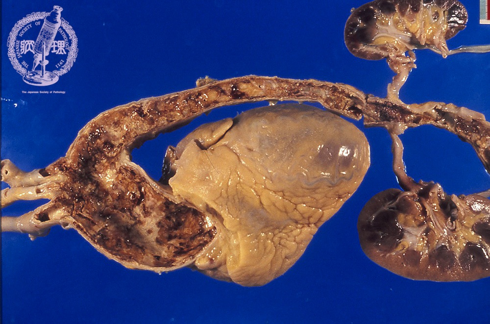 Macroscopic view (Takayasu arteritis): there is arterial wall fibrosis due to fibrous intimal narrowing and extensive adventitial fibrosis.