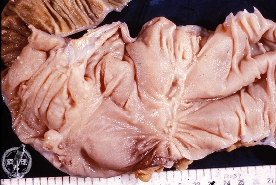 appearance: The ileocecum demonstrates annular ulcer and scar formation in this case of tuberculosis.