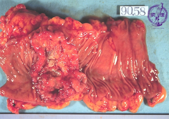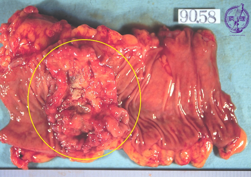 Gross appearance: Most cases of colorectal carcinoma are localized and ulcerating (Borrmann type 2).