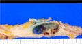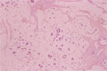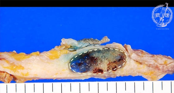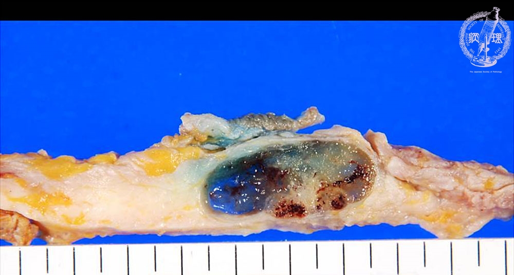 Macroscopic image:Abundant mucous production is characteristic of mucinous carcinoma. Without fixation, the cut surface reveals transparent jelly-like appearance, representing large amount of mucous.