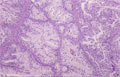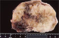 Macroscopic appearance: Smooth inner surface without solid nodule. Inner surface glossy due to mucous production.