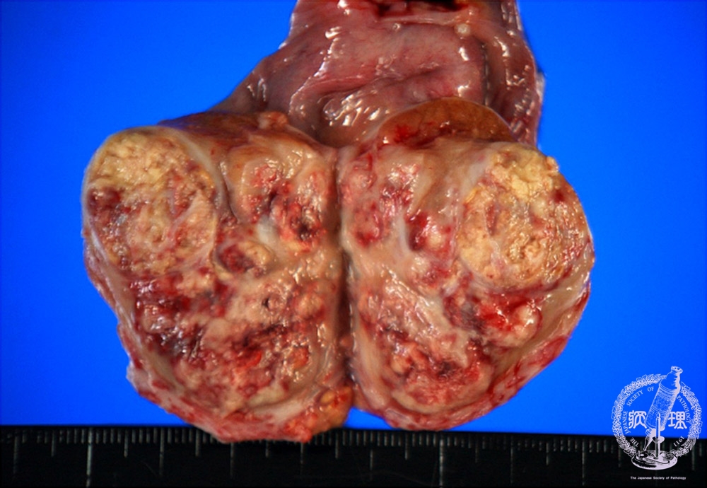 Macroscopic appearance: Most of testicular tissue is replaced by ill-defined tumor containing hemorrhage and necrosis. This is prevalent in the 20 to 30s. Pure embryonal carcinoma is at present considered rather rare and usually coexists with other germ cell tumor component.