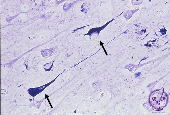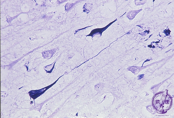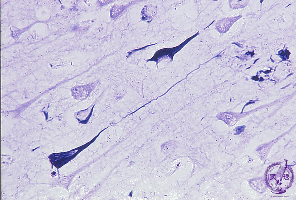 Microscopic findings (Bielschowsky staining): Bielschowsky staining demonstrated a markedreactivity for Alzheimer’s neurofibrillary tangles within the neuronal cytoplasms and neurites.