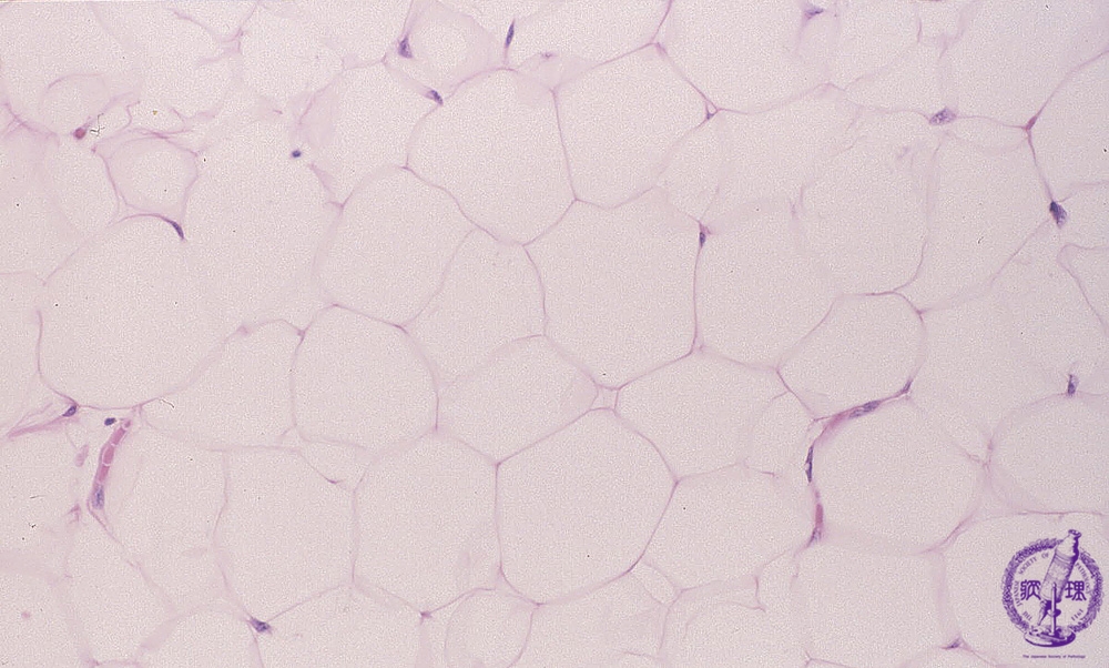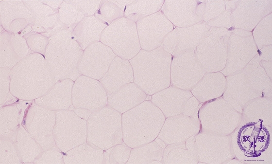Microscopic findings (H.E. intermediate power view): Tumor cells composed of relatively uniform mature adipocytes