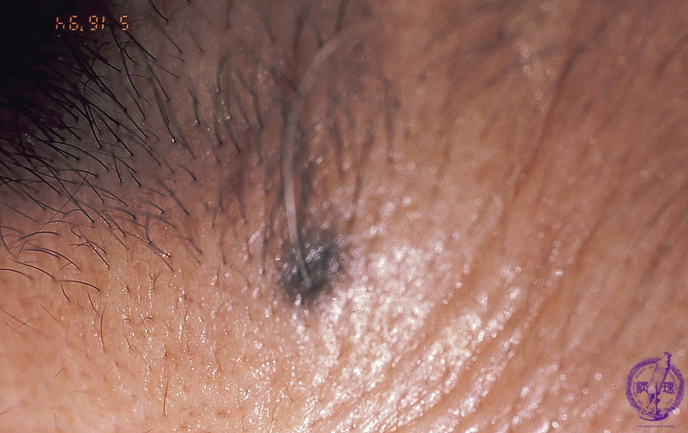 Macroscopic findings: It is the most common disease underlying the skin formations colloquially called a mole. It typically shows slightly elevated lesion and brown to black in color.