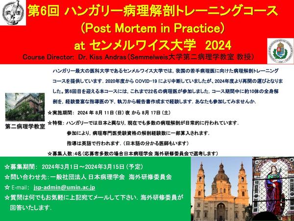 海外研修委員会ではSemmelweis大学(ブタペスト)でのハンガリー病理解剖トレーニングコース再開に向けて準備しております.
